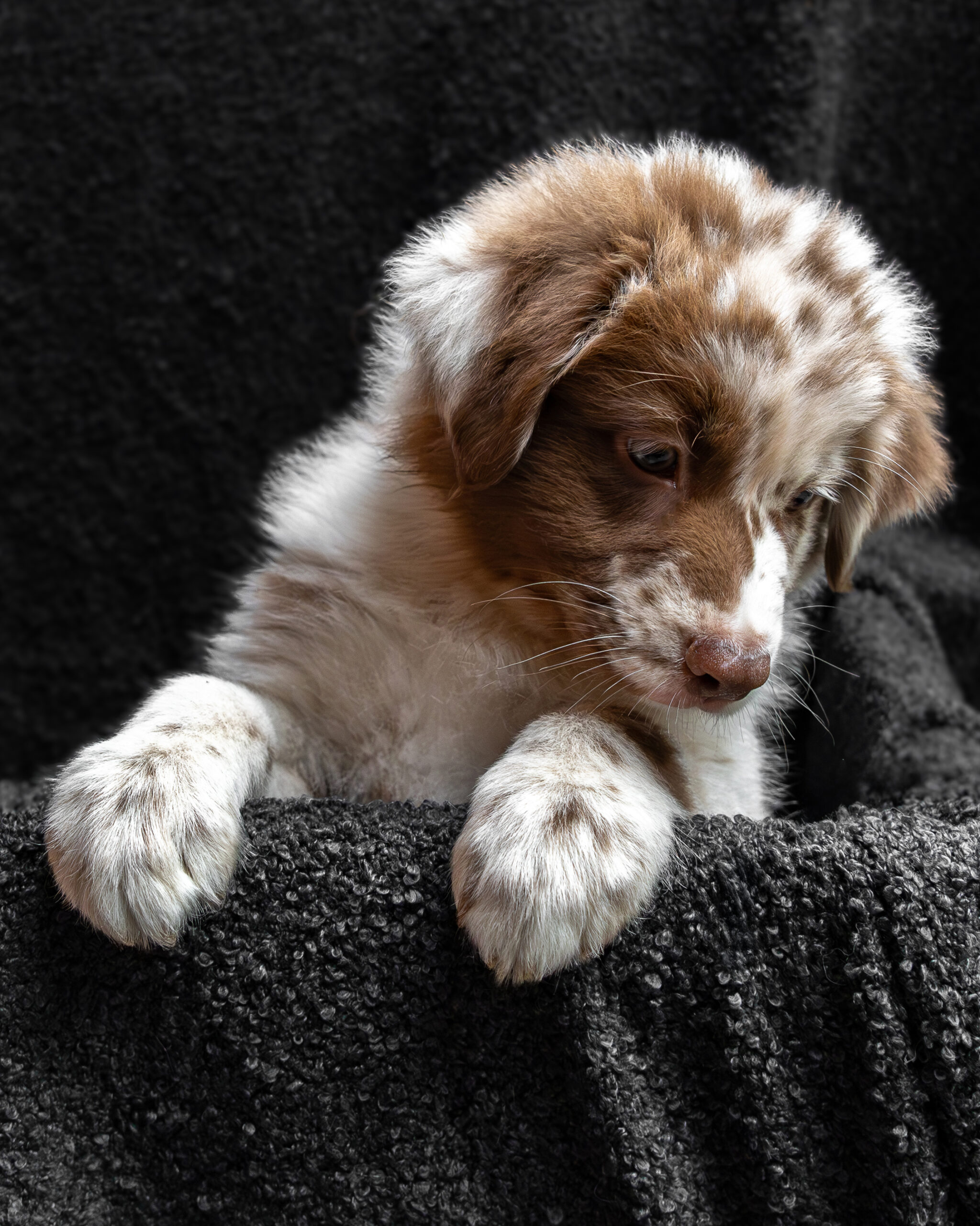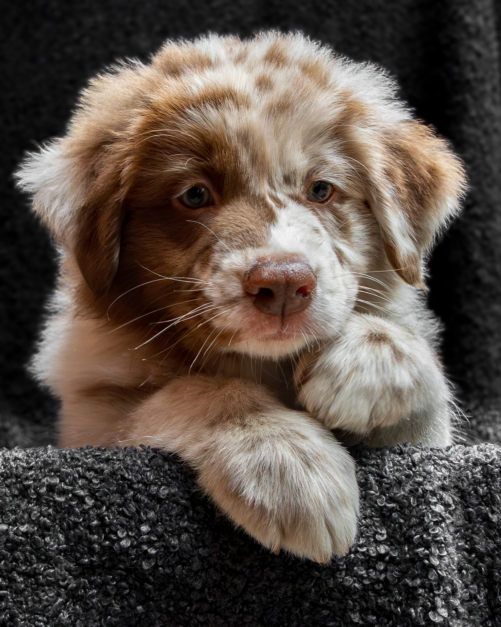 Maddie & Bacon • 2024 • red merle • COI10: 7.37%